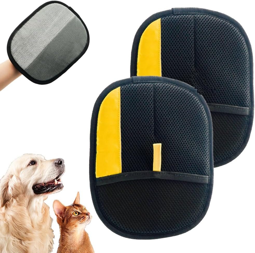 Write an article about 2PCS Pet Double Sided Grooming Glove Reusable, 2025 Upgrade Electrostatic Pet Hair Remover Gloves for Dog & Cat, Versatile Grooming Gloves for Couch, Furniture Carpet Car Seat (Yellow) in English