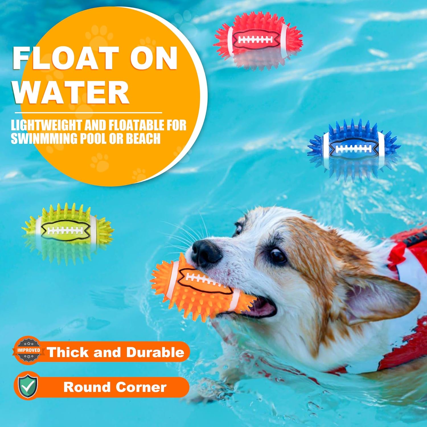 Write an article about 4.3” Dog Squeaky Football Toys 4 Pack, Interactive and Durable Spiky Dog Balls for Medium Large Dogs with Rugby Shape, Built-in Squeaker for Teeth Cleaning and Training in English