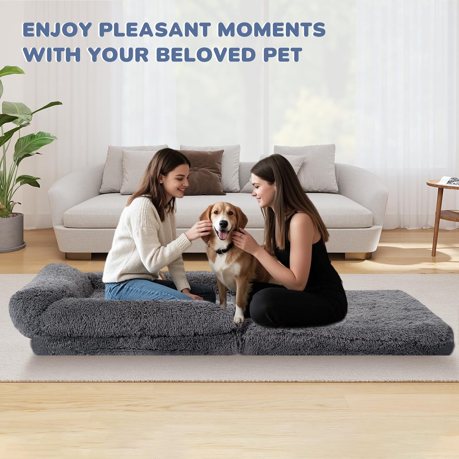 Write an article about 79″ Foldable Human Dog Bed for Adults, Fluffy Faux Fur with Blanket, Orthopedic Washable Dog Bed with Memory Foam and Water Repellent Liner Extra Large Thick for Pet in English