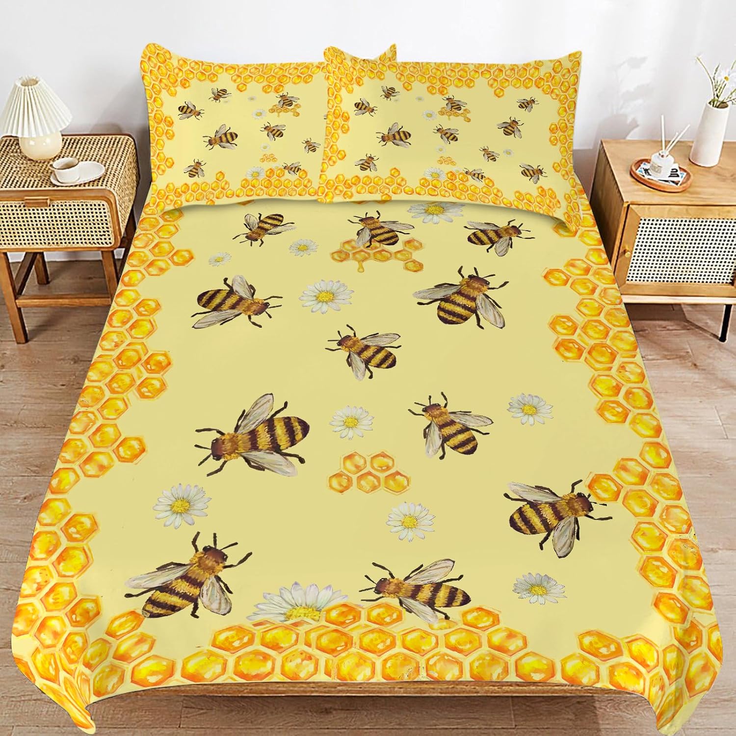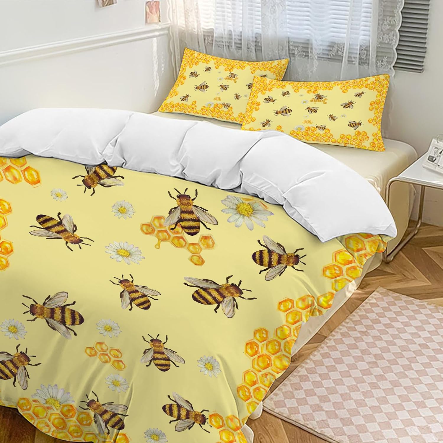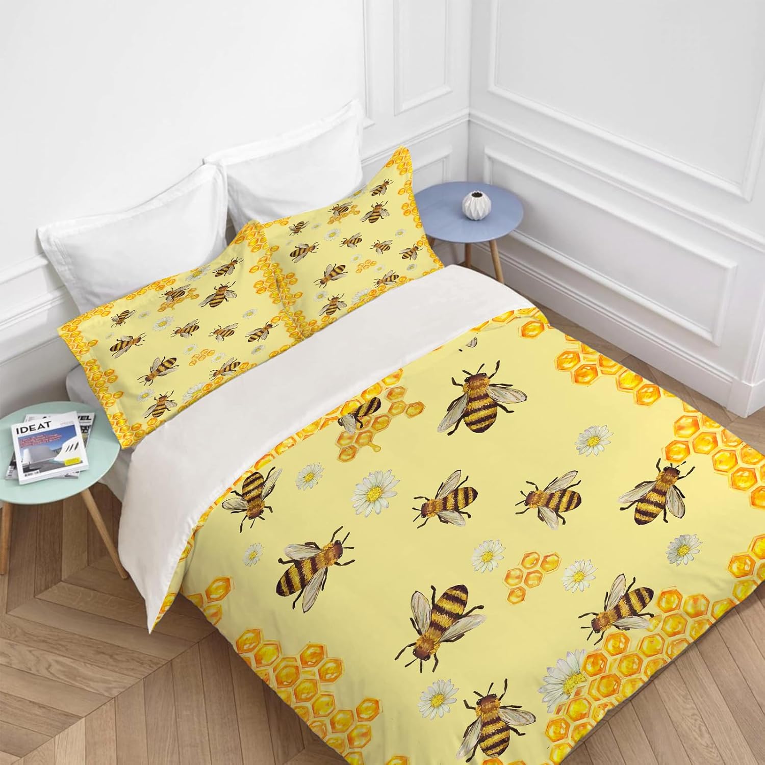 Write an article about Bee Bedding Set Honey Bee Theme Comforter Set Covers for Kids Adults Women Yellow Bee Duvet Cover Bedroom Decor Soft Twin Size Quilt Cover with 2 Pillowcases in English