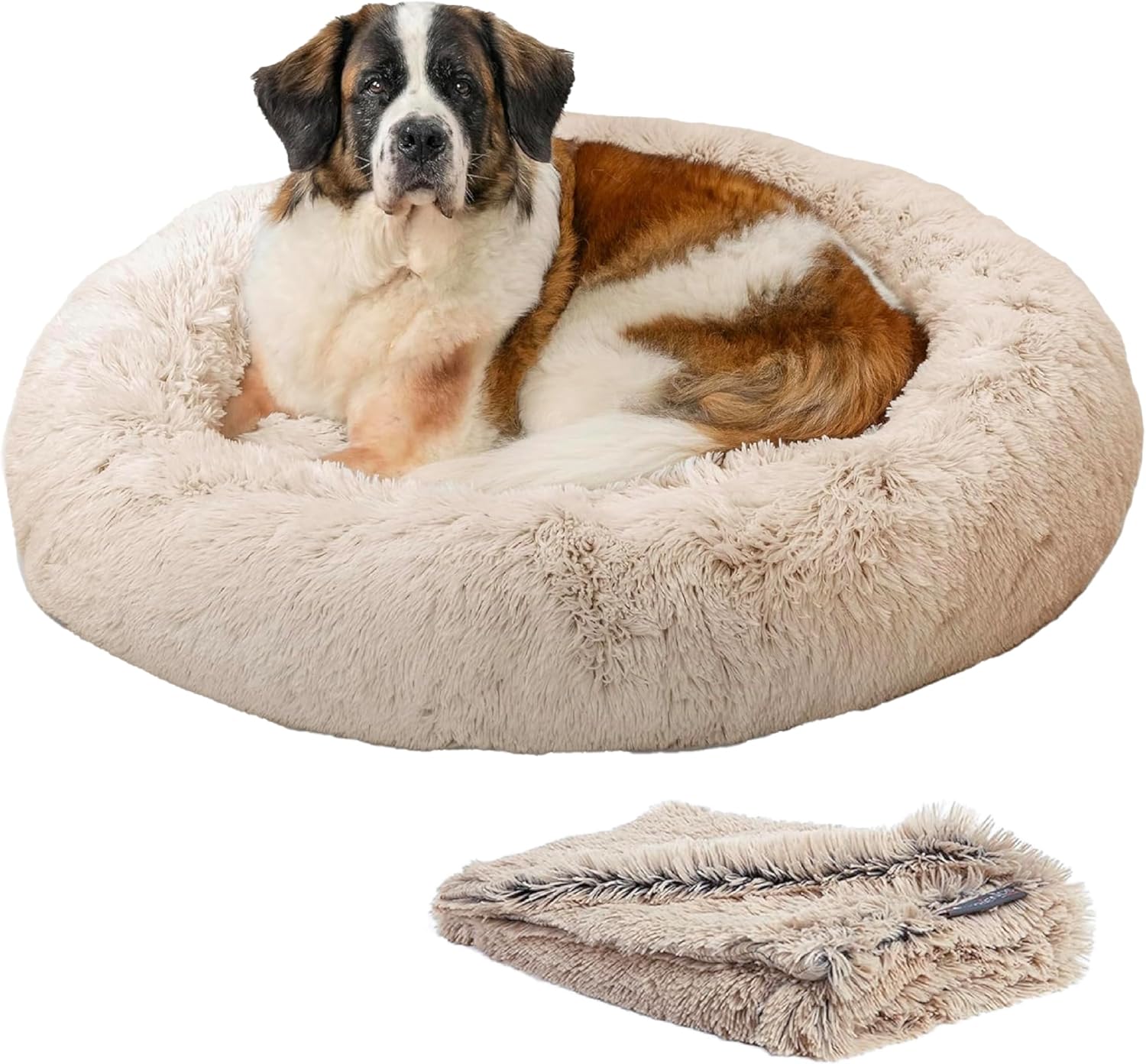 Write an article about Best Friends by Sheri Bundle Set The Original Calming Shag Donut Cuddler Cat and Dog Bed + Pet Throw Blanket, Taupe, Extra Large, 45×45 in English
