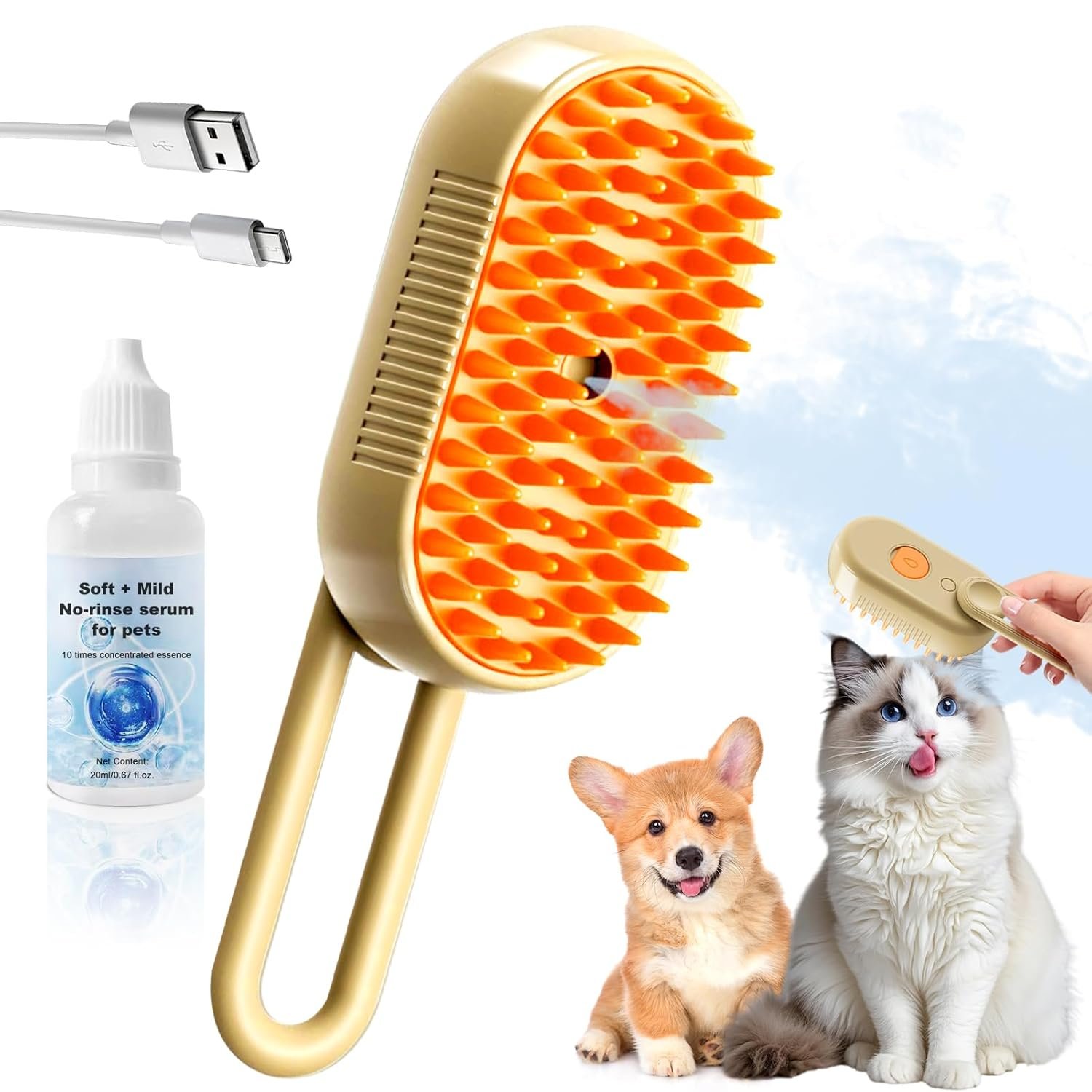 Write an article about Cat Steam Brush for Shedding, Cat Steam Brus h CatBrush, 4-In-1 Self-Cleaning Pet Steam Brush With 360° Rotating Arm for Long and Short Hair Cats and Dogs Grooming Supplies (Brown3) in English