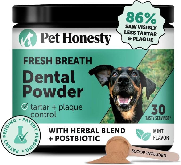 Pet Honesty Dog Breath Freshener Dental Powder for Teeth Cleaning Plaque Off, Dental Care for Dogs, Tartar Remover for Teeth with Natural Herbal Blend + Postbiotics (Mint – 30 Servings)