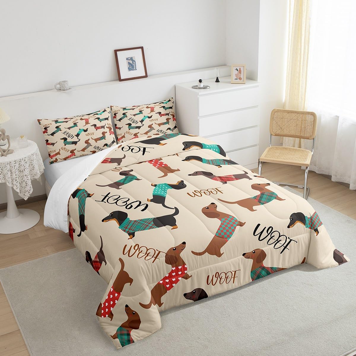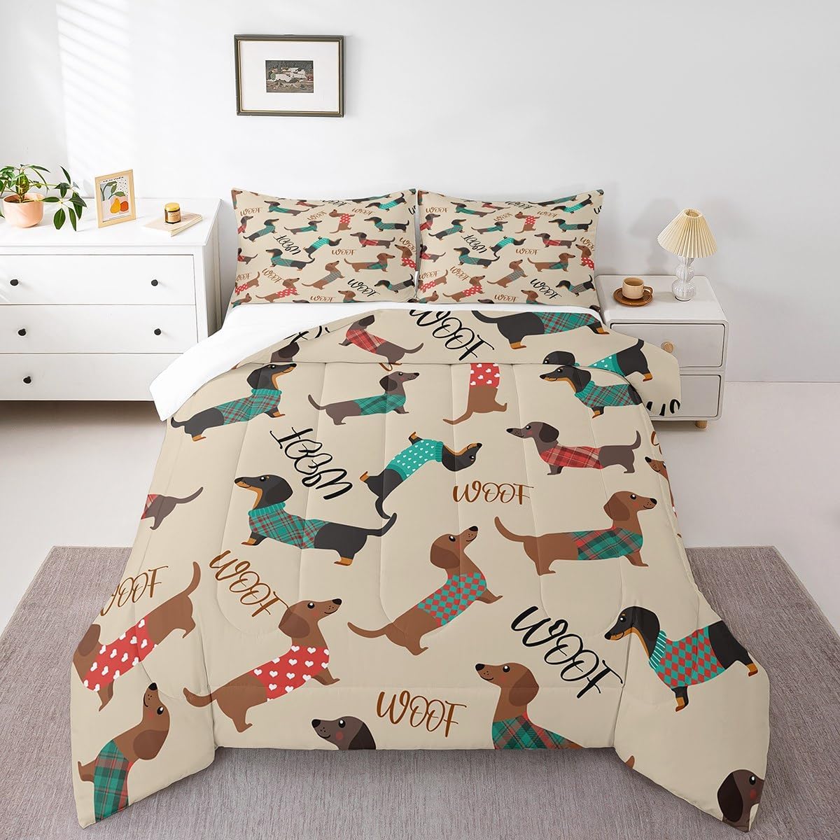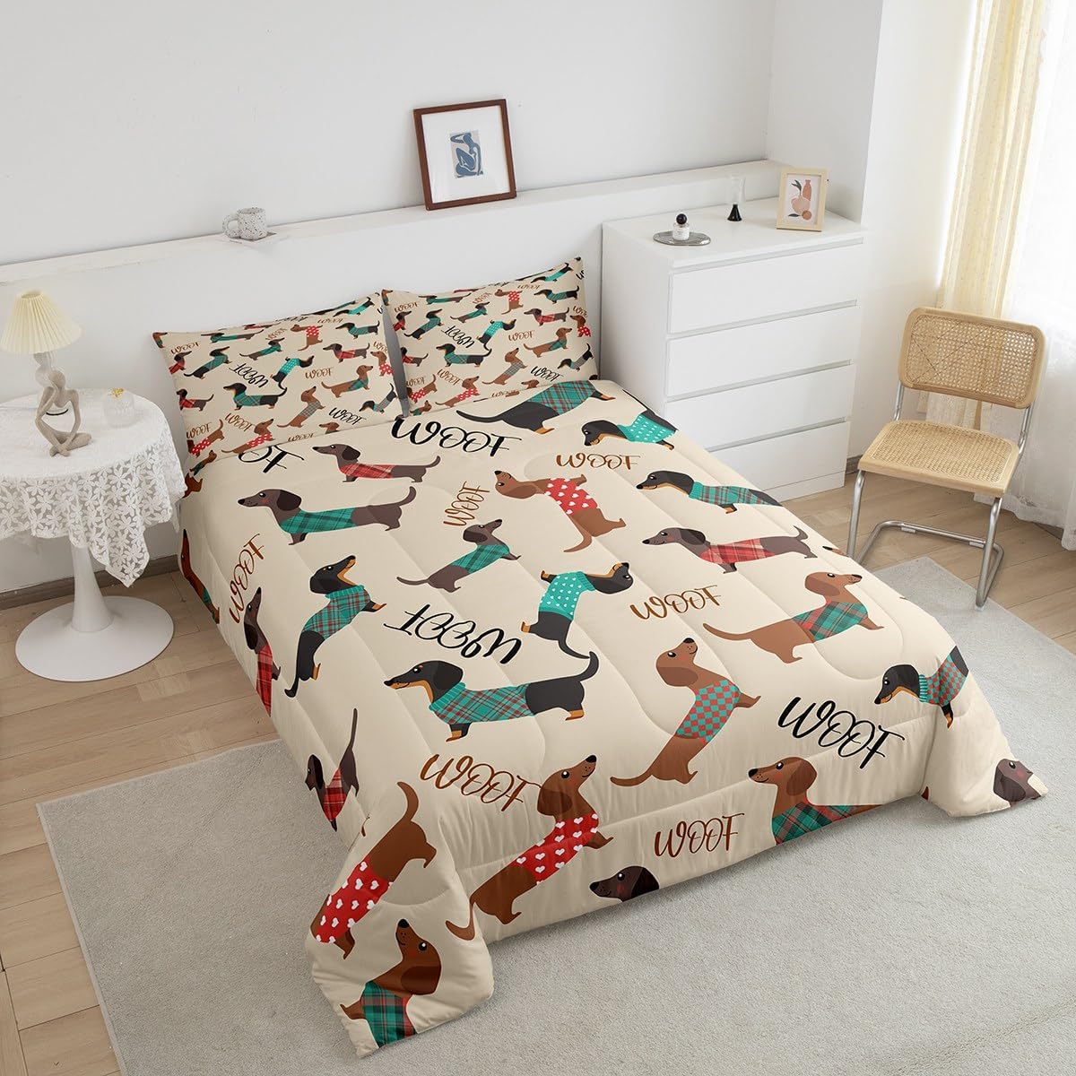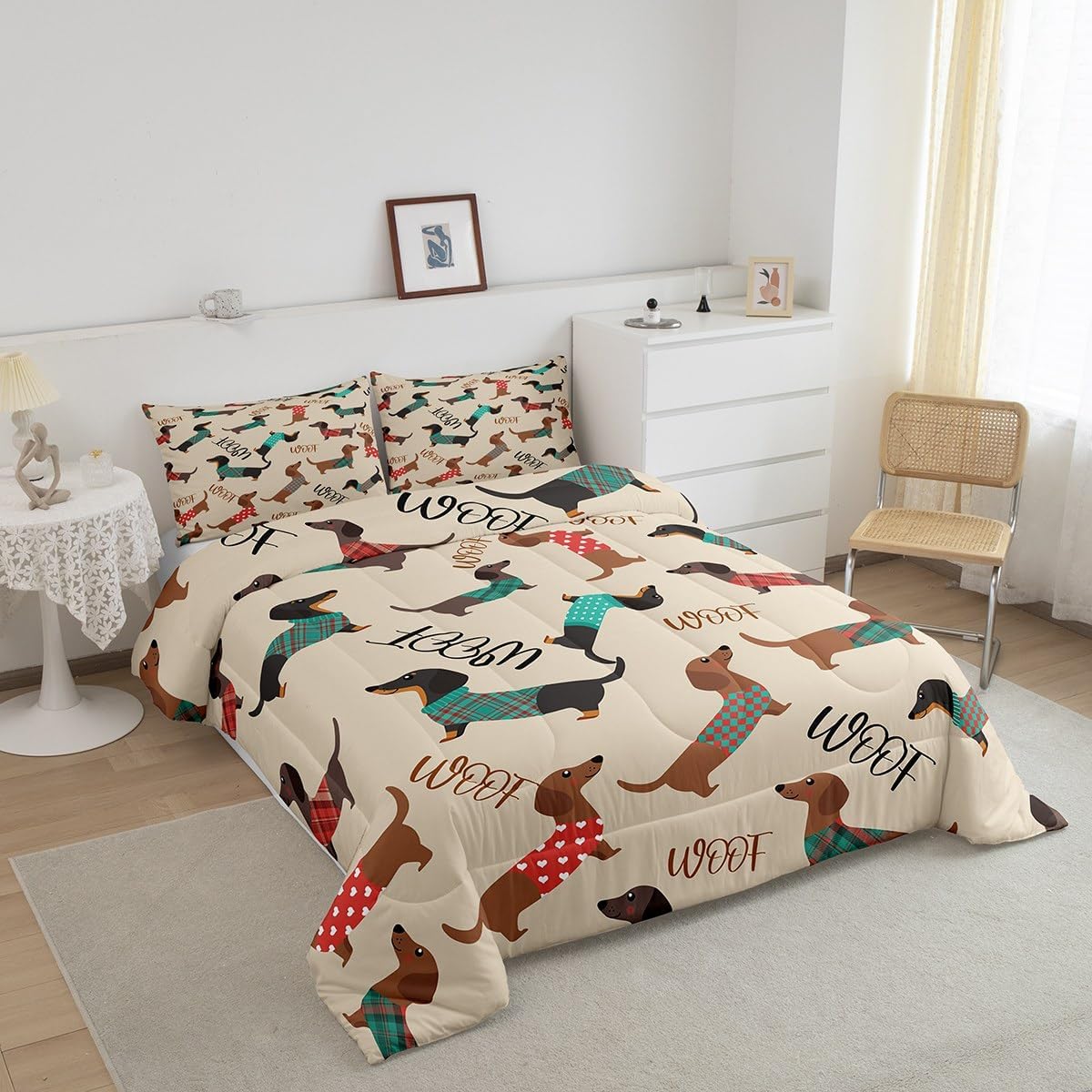 Write an article about Cute Cartoon Dachshund Puppy Comforter Set – Colorful Dog Print Bedding for Kids Boys Girls Toddler, Queen Size Duvet with 2 Pillowcases in English