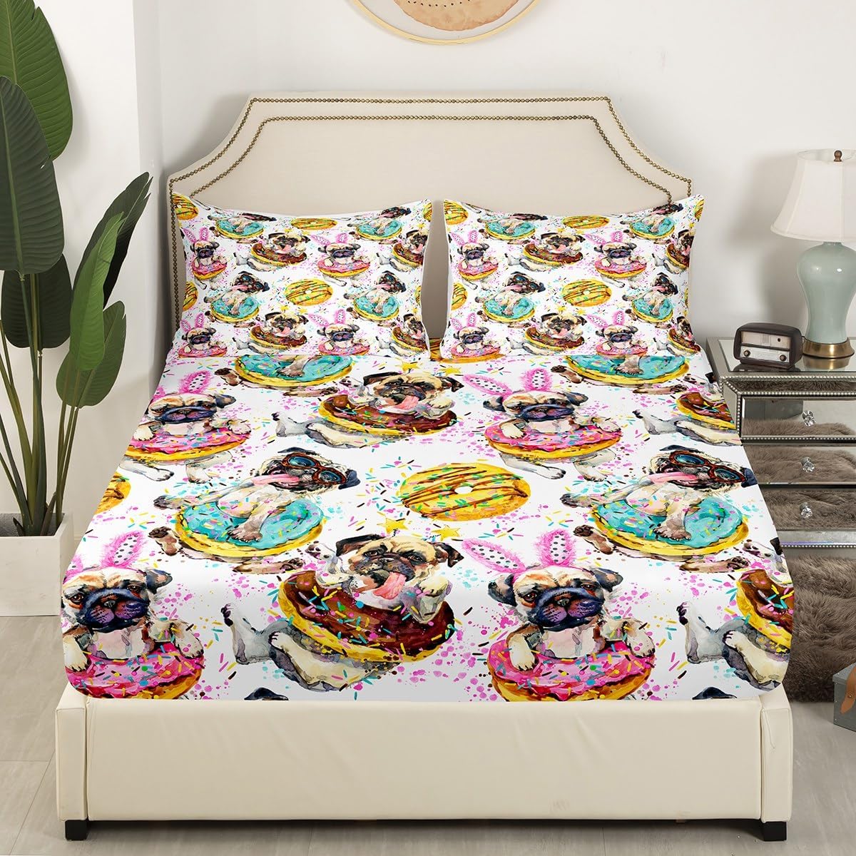 Write an article about Erosebridal Dog Bedding Set Deep Pocket, Dessert Donuts Fitted Sheet for Kids Boys Girls Cute Puppy Sheet Set Twin Size Lovely Pug Animal Confetti Bed Sheet 2 Pcs with 1 Pillow Case in English