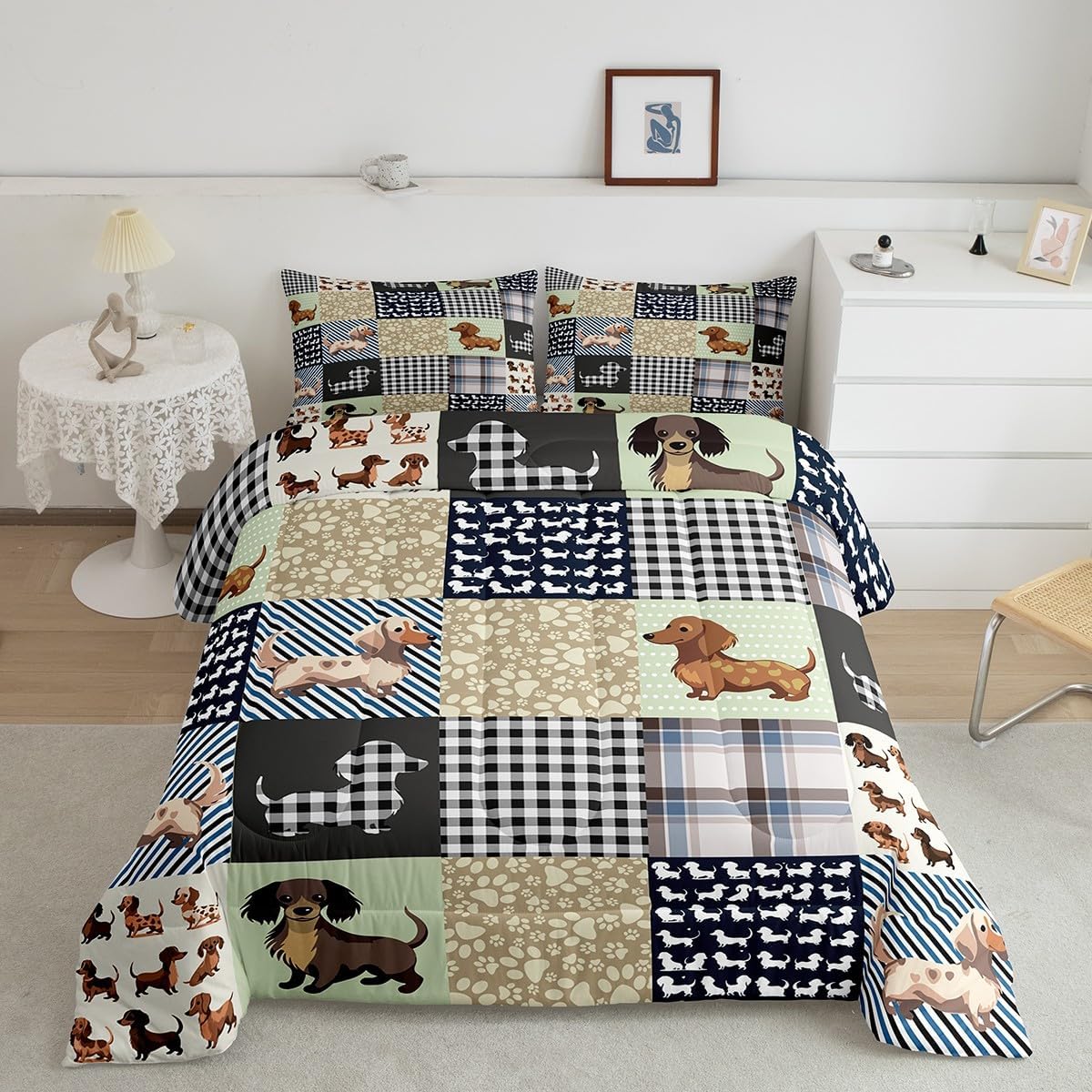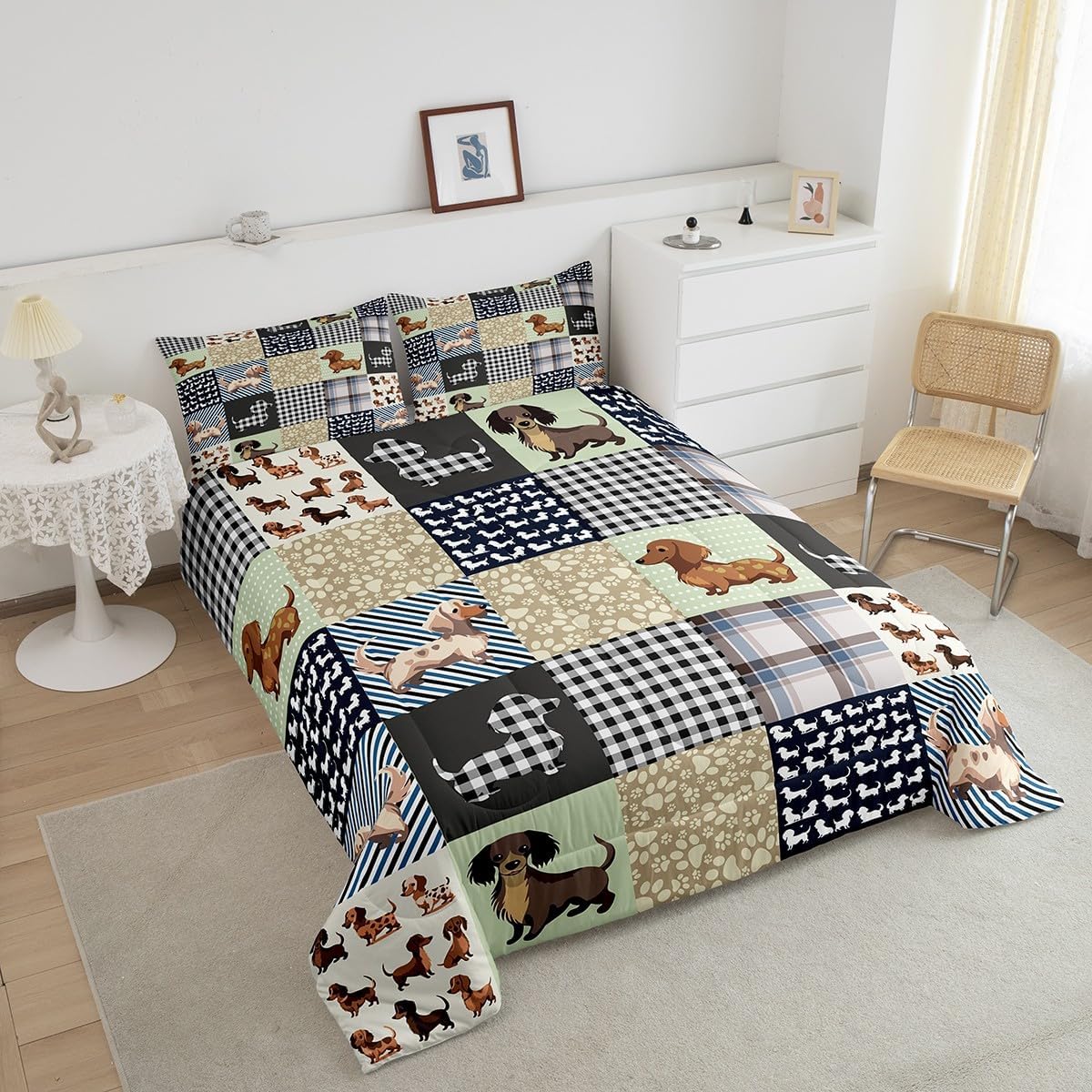 Write an article about Feelyou Sausage Dog Bedding Set Full Size Dachshund Comforter Set for Kids Boys Girls Decor Puppy Dog Comforter Microfiber Cute Duvet Set Bedroom Quilt Set in English